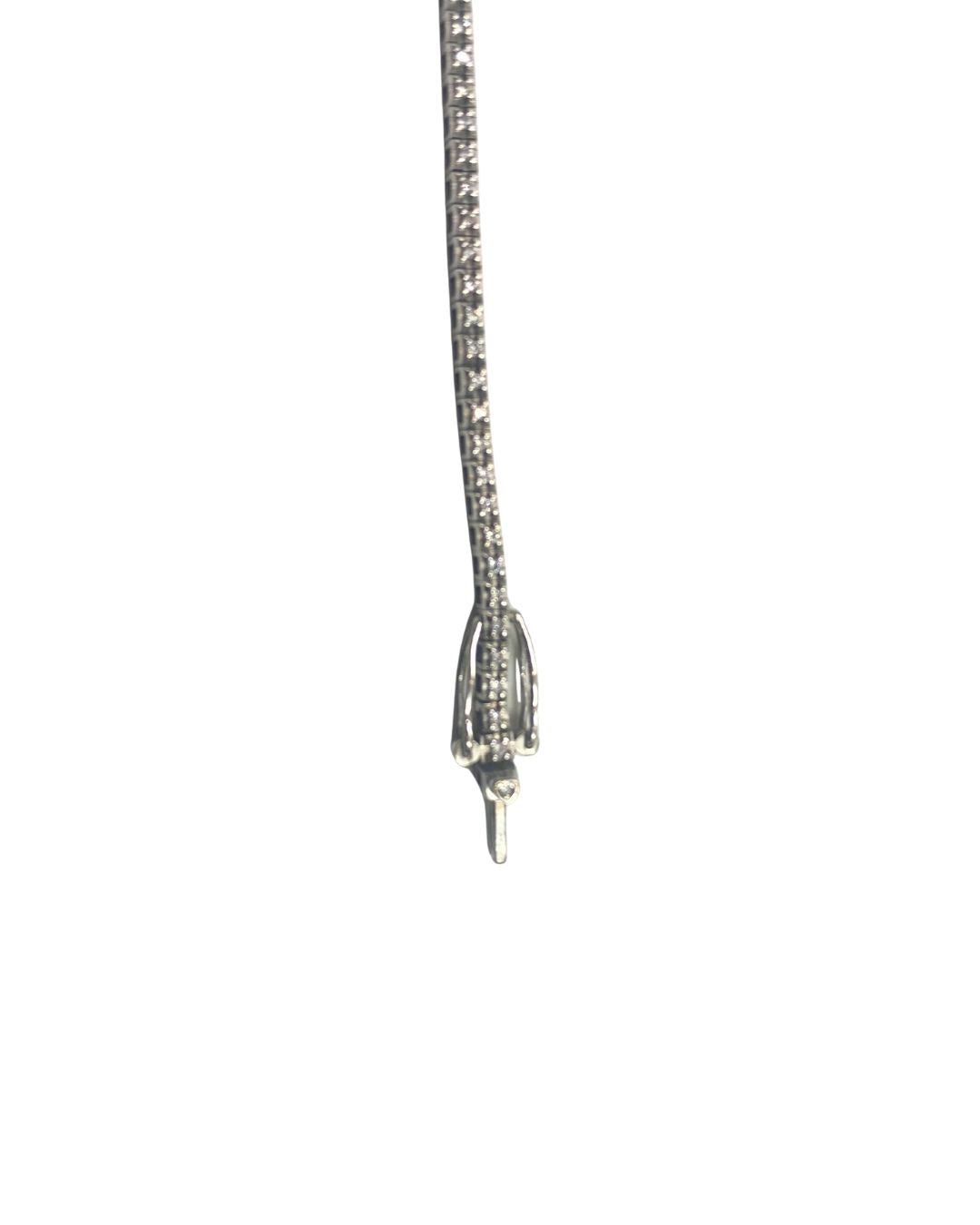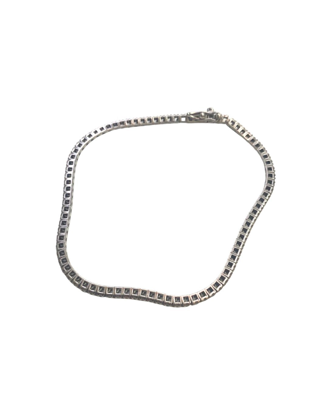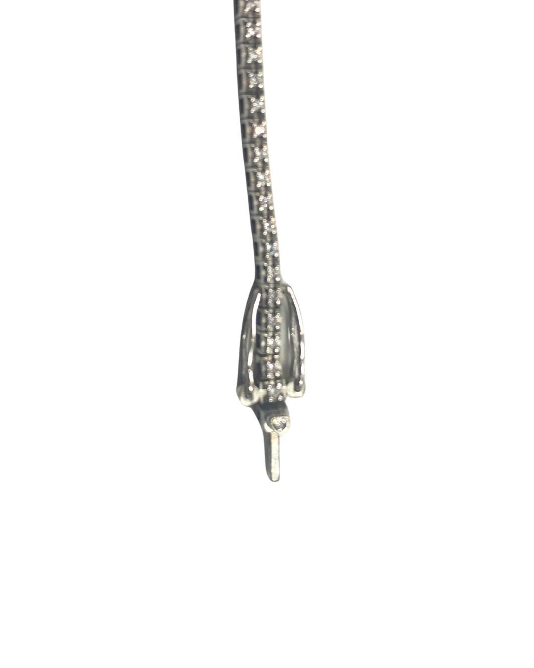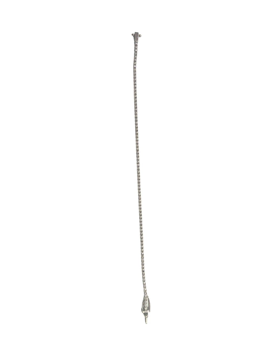 Crafted in solid 18k white gold, the bracelet features a continuous row of brilliant-cut diamonds set with exceptional precision, creating a fluid, delicate silhouette that moves effortlessly with the wrist. The sparkle is refined and understated — not flashy, just luminous — the kind of everyday luxury you forget you’re wearing until it catches the light.