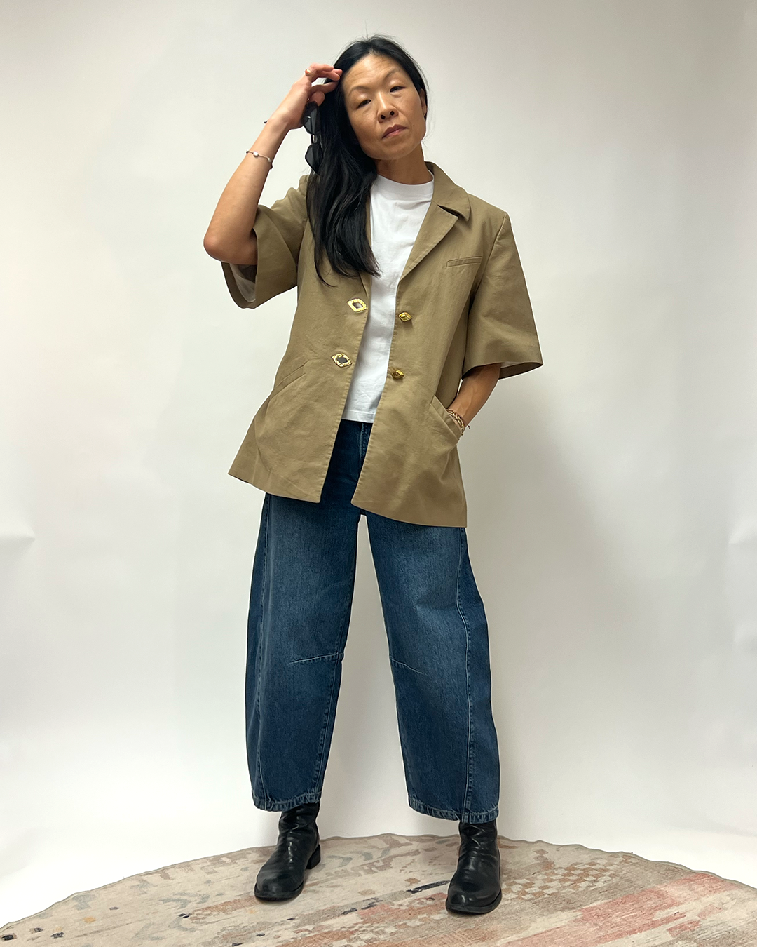 A modern take on classic sportswear, this Ganni jacket blends relaxed utility with effortless Scandinavian style. Crafted from 100% cotton in a soft beige tone, it features a clean, structured silhouette with a lightweight feel—perfect for layering through multiple seasons.