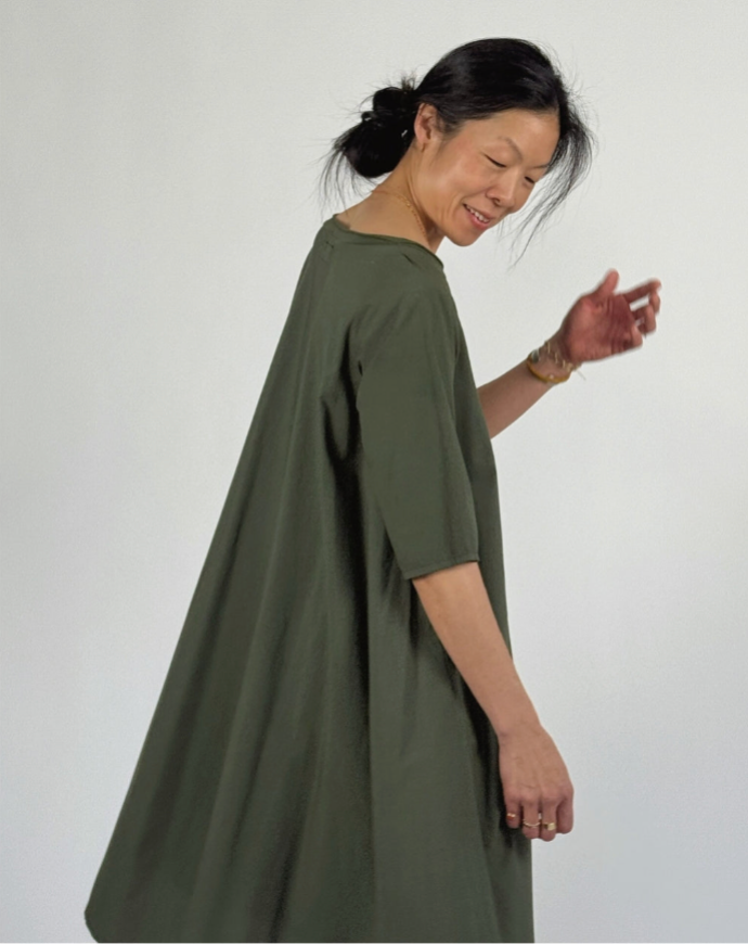 Has a stretchy, a-line body with a scooped neckline and finished hem. Details Scoop neck. 3/4 length sleeves. Finished hem and sleeves. Pulls over. T-Shirt shoulder yoke. Shoulder 13", 19.5" chest, 25" waist, 37.5" length (approximately).