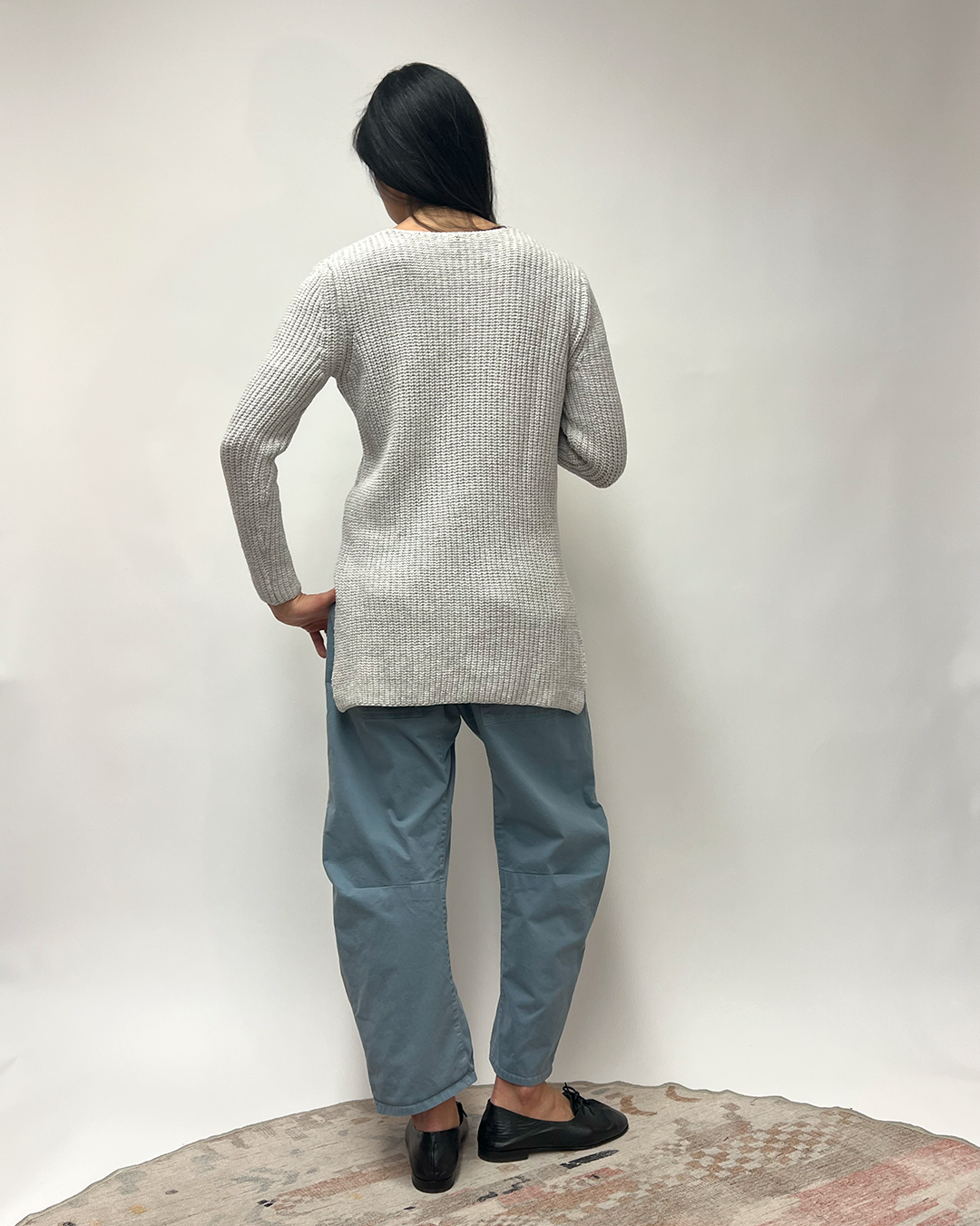 Effortless Italian elegance with a modern edge. This Eleventy sweater is crafted in a soft cotton-blend knit, offering breathability with a gentle, cozy feel. The flattering hi-low silhouette drapes longer in the back for graceful movement and easy layering—ideal over a slip skirt, tailored trousers, or your favorite everyday denim.