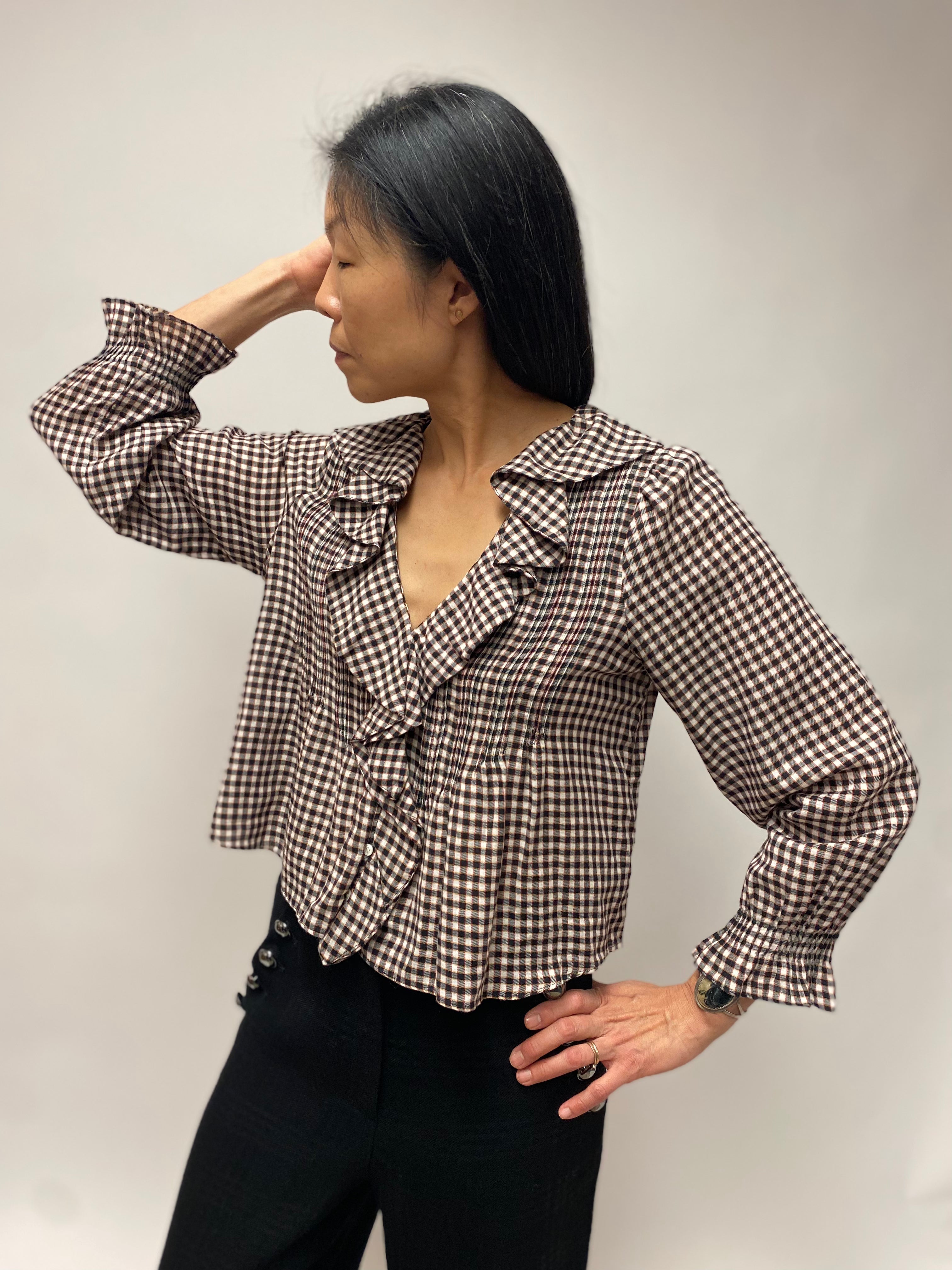 Dôen Ruffle V-Neck Cotton Top – Size Medium