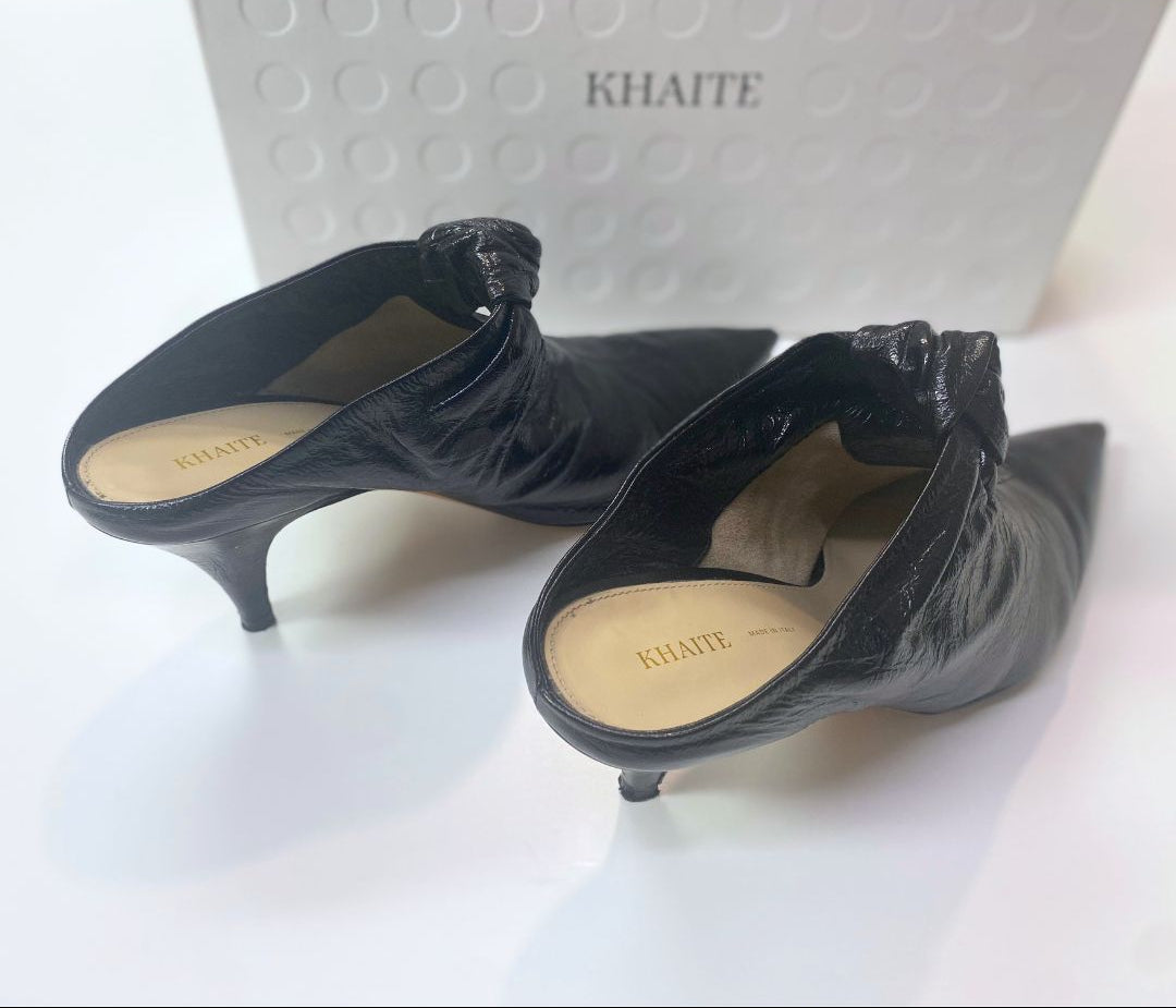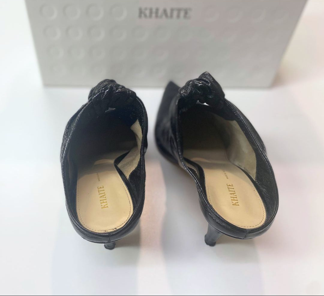 Effortless luxury from Khaite—these minimalist leather slides are the kind of piece that quietly carries an entire outfit. Crafted from supple, high-quality leather with a sleek, modern silhouette, they balance comfort and refinement with that signature Khaite restraint. The softly molded footbed and easy slip-on design make them perfect for everyday wear, while the sculptural shape keeps them polished enough for evenings out.